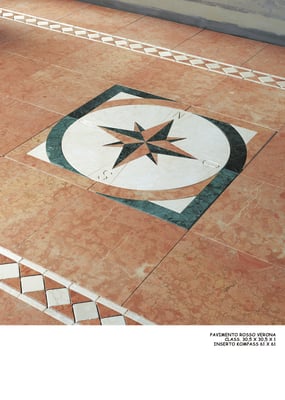 Marmi utilizzati: Botticino o Travertino, Rosso Verona, Rosa Perlino, Nero, Bianco Carrara.